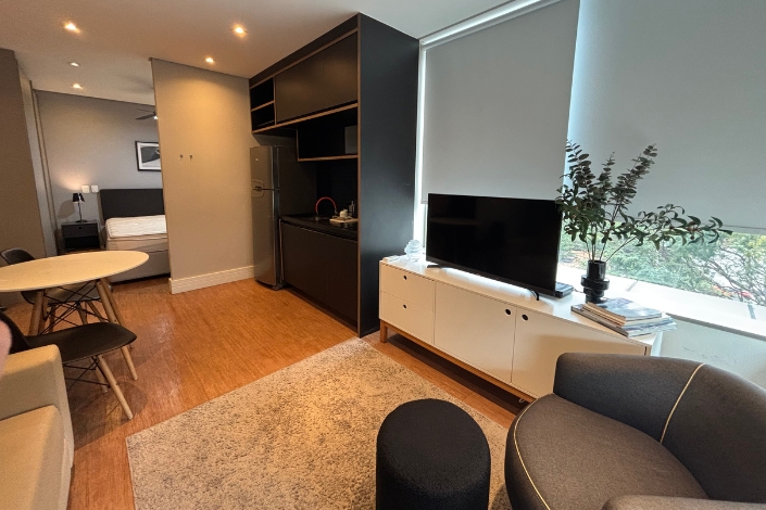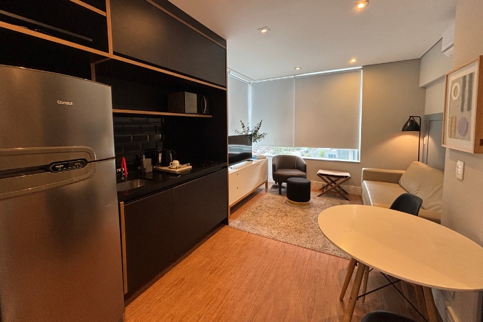 Este studio de 35m² no VN Ferreira Lobo, localizado na Rua Coronel Ferreira Lobo, 305, combina design contemporâneo, praticidade e o estilo de vida sofisticado que define a Vila Nova Conceição.